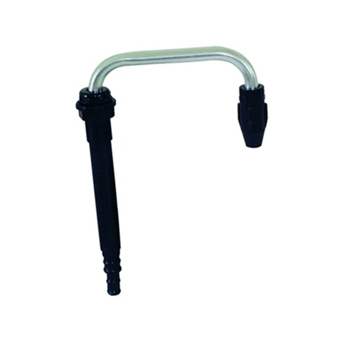 Teleskopisch schwenkbarer Wasserhahn. Schwenkbar um 360°. Mit verstellbarerem Verschluss aus Nylon. Materialien: eloxierte Aluminiumlegierung und Kunststoff. Für Schlauch mit Durchmesser von 10-15 mm. Für die Verwendung mit der Fußpumpe 26951.