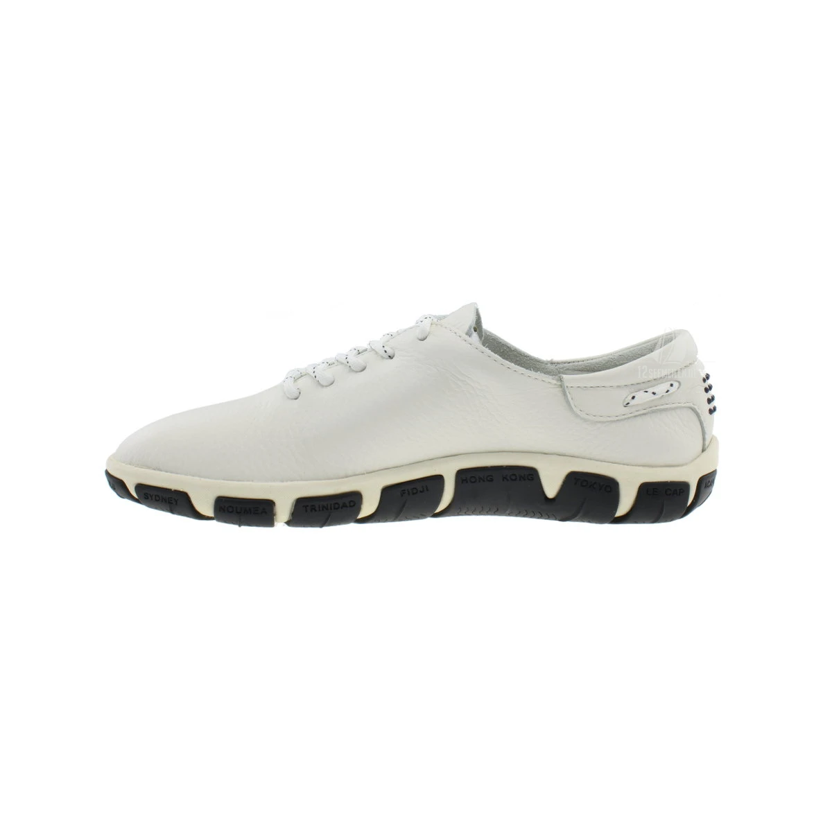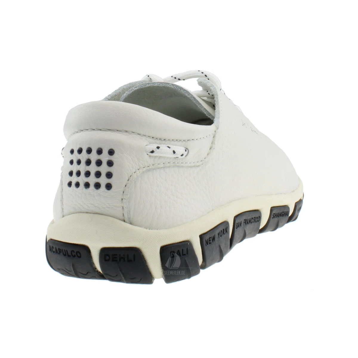 Der TBS Jazaru aus der Serie Les Marinièrs ist ein modischer und komfortabler Bootsschuh für Damen. Er ist ungefüttert, besteht aus Kalbsnarbenleder und hat im vorderen Bereich keine Nähte. Dadurch ist er sehr angenehm zu tragen und schmiegt sich dem Fuß der Trägerin an. Das atmungsaktive Material erlaubt es, dass der TBS Jazaru Bootsschuh auch ohne Socken oder Strümpfe bequem getragen werden kann. Durch das seewasserfeste und schnell trocknende Material ist der Bootsschuh der ideale Begleiter an Deck. Die flexible Gummisohle hat ein rutschfestes Profil und bietet dadurch den nötigen Halt auch bei nassen oder welligen Verhältnissen. Die Innensohle des TBS Jazaru ist herausnehmbar. Für ein modisches Highlight sorgt das Sohlendesign mit prominenten Urlaubszielen. Der sportliche Bootsschuh lässt sich mit einem sauberen Baumwolltuch reinigen und sollte regelmäßig eine Pflegecreme für Leder auftragen bekommen.